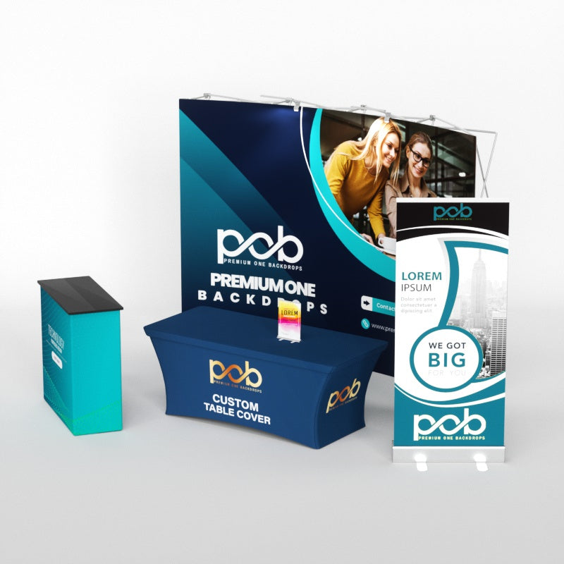- Curved Fabric Pop Up Display -Qty 1: Size 10FT (W) x 7.5FT(H) | Crafted from ultra-durable 230 GSM polyester fabric, these panels feature seamless dye-sublimation printing for razor-sharp visuals. Supported by a lightweight yet robust 32mm aluminum frame (1.1mm thickness), they deliver striking vertical presence while ensuring effortless assembly.